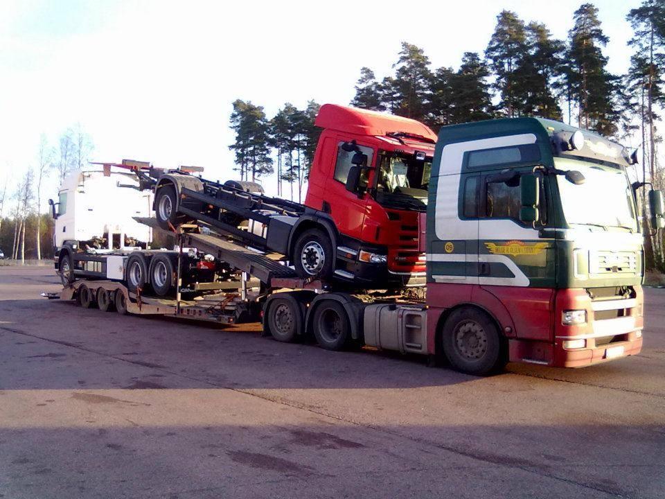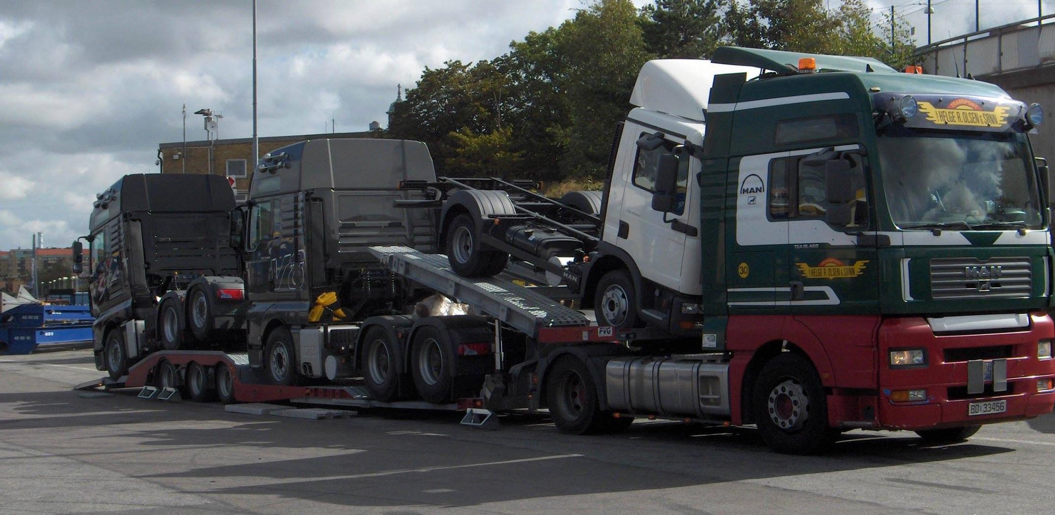 Vi tilbyr kranbiler med hengere for transport av tunge og uhåndterlige last.